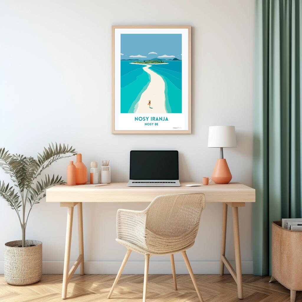 🇬🇧 Off the coast of Nosy Be, in northwestern Madagascar, lies a true paradise: Nosy Iranja, a natural gem that feels like it was pulled from a dream. Made up of two islands connected by a pristine white sandbar, Nosy Iranja offers one of the most spectacular and photographed landscapes of the Red Island. Famous for its untouched beaches, turquoise waters, vibrant marine life, and lush tropical forests, this destination perfectly embodies the promise of an idyllic escape. This poster captures the serene magic of this tropical jewel, where shimmering seas, rich nature, and radiant light come together in harmony.